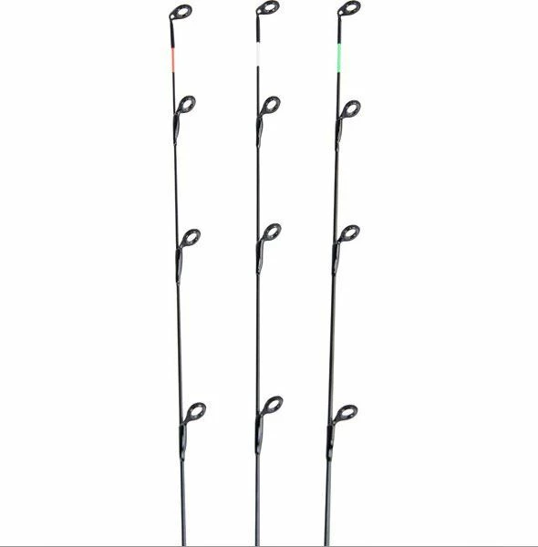 - Supplied with three carbon tips, a 0.5oz, 1oz and a 1.5oz. Both lengths feature a tough blank that has enough power to cast accurately which makes this range perfect for silvers on natural venues, but especially comes into its own when fishing for F1s on commercials! With an ultra slim and incredible through action, you will really appreciate just how good it is once you hook a fish.
