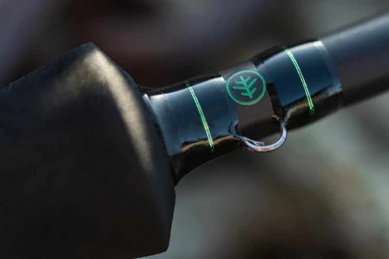 - A matt black blank, with eye-catching detail on the butt section, high gloss black whippings with green highlights